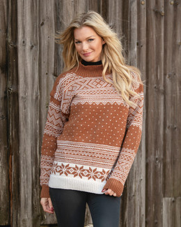 Helmönstrad tröja med halvpolo. Stickas i garn Merino från Viking of Norway. Tillbehör: Rundstickor 3 och 3,5 mm.