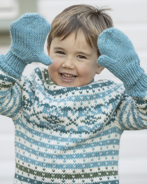 medan det stickade materialet håller små händer varma under kyliga dagar. Perfekta vantar för lek och utevistelse.