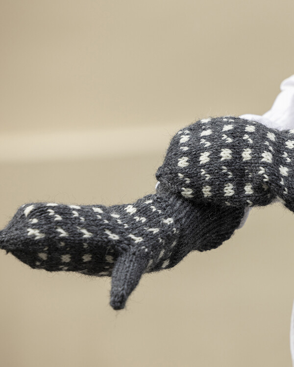 Ett par stilrena stickade vantar i mörk botten med ljust småmönstrat motiv som ger ett klassiskt och elegant uttryck.