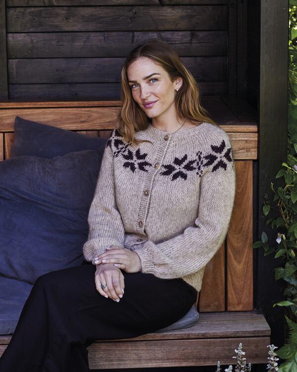 Kofta Frostknopp är en klassisk kofta med vackert okmönster inspirerat av naturens former.
