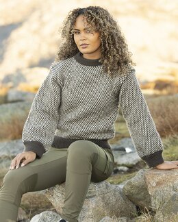 Skapa en stilren och modern tröja med detta stickmönster. Den tvåfärgade strukturen ger ett levande uttryck, medan de breda muddar och den raka passformen gör modellen både bekväm och tidlös.
