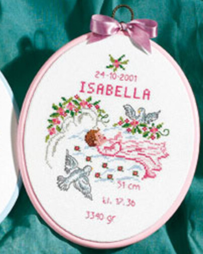 Broderier > Broderikit utan garn > Broderikit Födelsetavla flicka