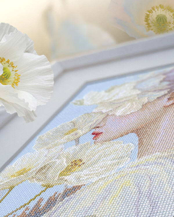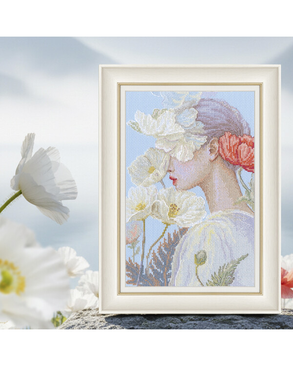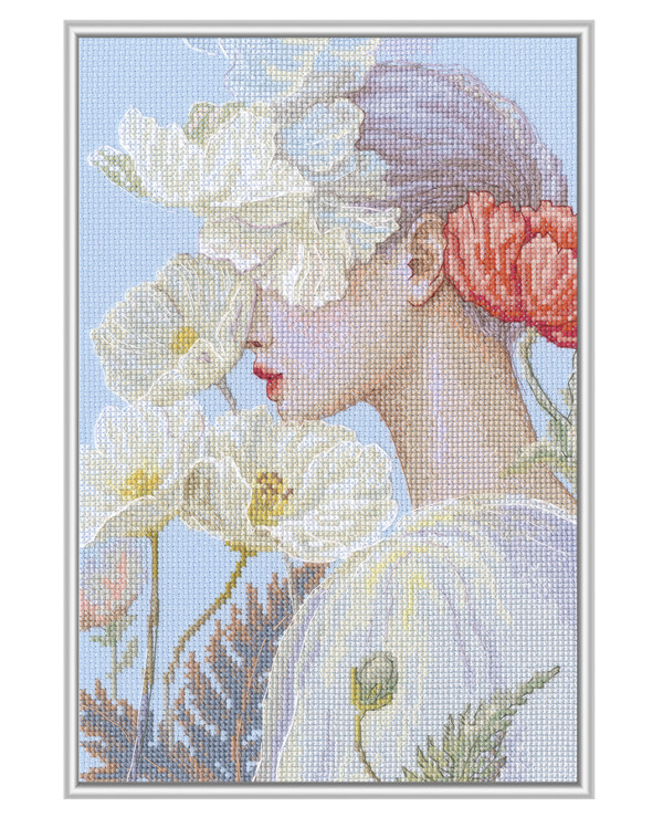 Broderier > Broderikit utan garn > Broderikit Tavla Kvinna med blomma