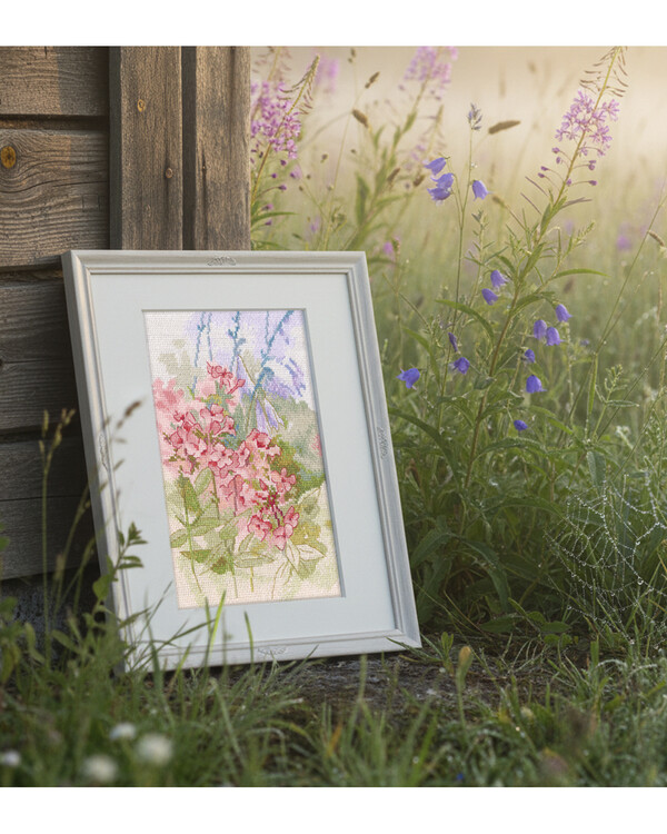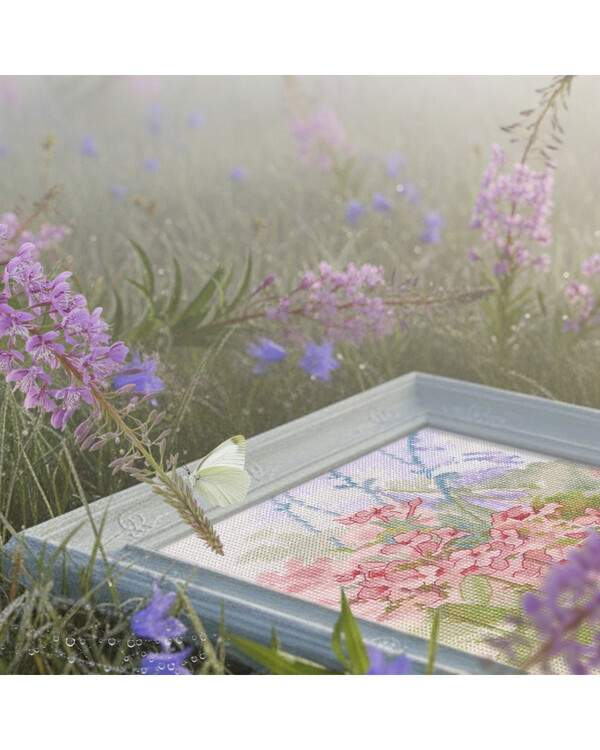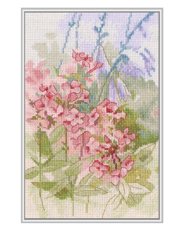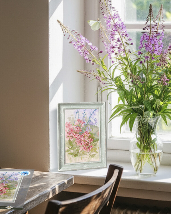 Ett romantiskt broderimotiv med blommor i ljusa, mjuka färgtoner. De skira nyanserna och den luftiga kompositionen ger e...