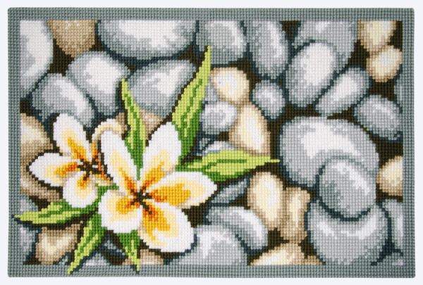 Broderas med acrylgarn i härliga färger i korsstygn på grov stramaljväv, där motivet är påmålat. Storlek ca 75x50 cm.