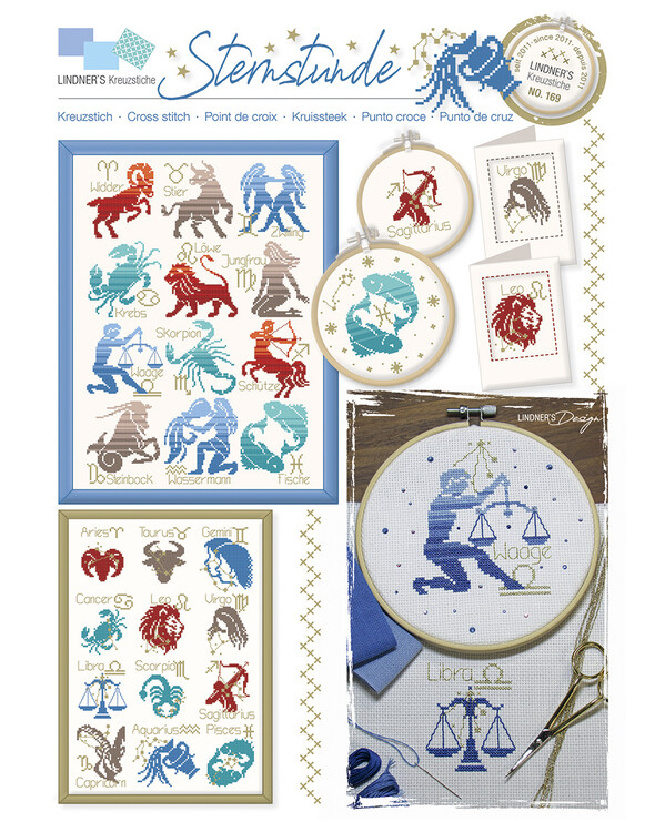 Ett stämningsfullt korsstygnsmönster från Lindner’s Kreuzstiche med alla tolv zodiakens stjärntecken. Mönstret innehålle...