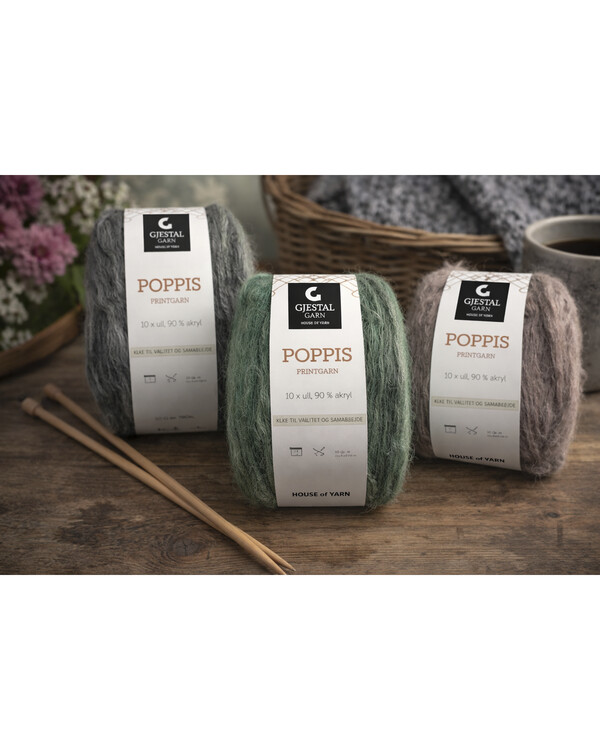 Poppis från Gjestal Garn är den perfekta kvaliteten för stickare som älskar enkelhet med en touch av färg. Tillverkat av 90% akryl och 10% ull ger detta garn en elegant blandning och ett fantastiskt resultat.