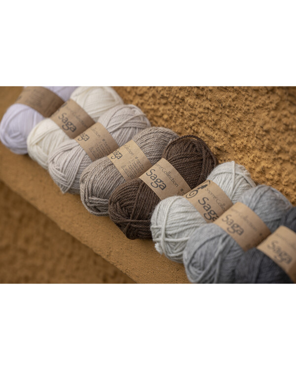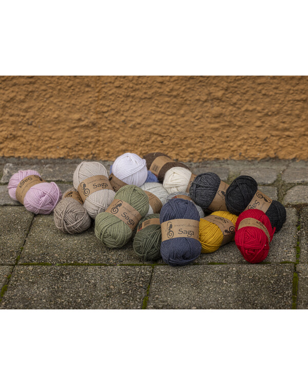 Saga är ett mjukt och varmt garn från Viking of Norway. Blandningen av ull, fin alpacka och nylon ger både exklusiv känsla, skön värme och bra slitstyrka.