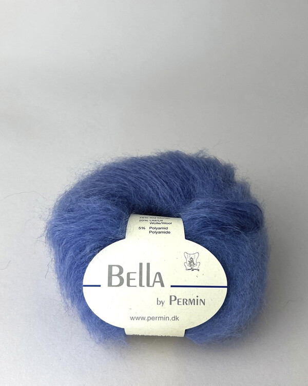 Garn Bella från Permin! Ett mjukt och tunt blandgarn där Kid Mohair, ull och polyamid samspelar. Passar pefekt till stickning av tröjor, koftor och västar!
