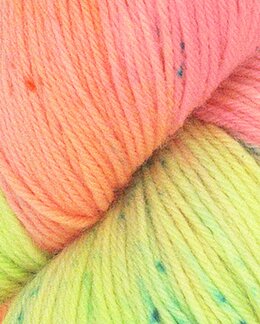 Med en löpängd på ca 400 meter per 100 g härva är det mycket drygt – en enda härva räcker till ett par vuxensockor eller ett luftigt projekt med vackra färgskiftningar. De melerade tonerna ger varje plagg ett unikt uttryck.